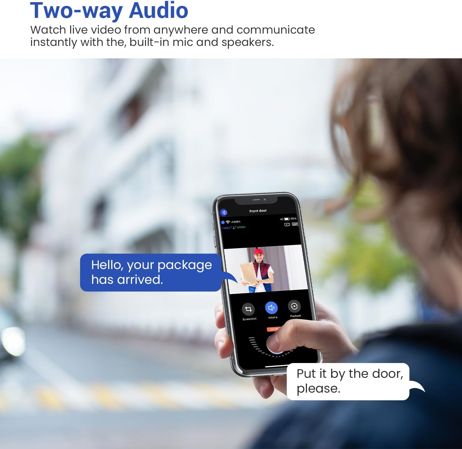 ميكروفون وسماعة مدمجان تتيح لك التحدث مع من على الباب مباشرة عبر هاتفك سواء للترحيب أو لإعطاء تعليمات سريعة